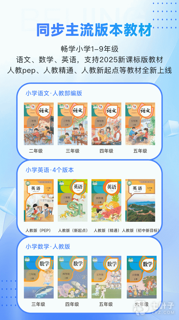 2、主要是帮助中小学生去提升自己的综合成绩,涵盖了语数外三门科目,同时培养听书读写的能力