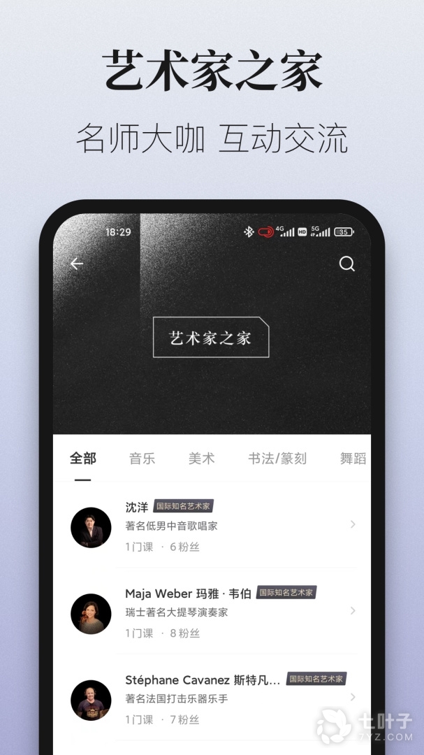 4、爱艺术+app里有众多艺术大家的视频课程,学生在这里可以看到不同的授课方式,接触到不同的演奏和绘画风格