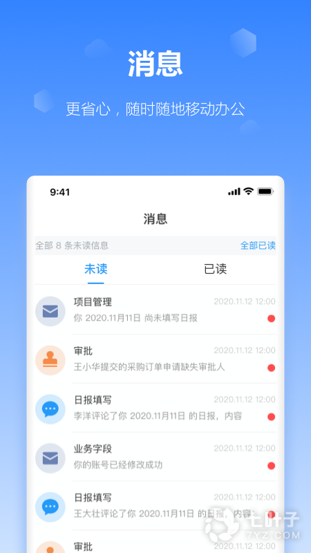 3、可以为你提供一个很便捷的办公方式,打开手机就可以及时的了解日常工作内容,处理超级方便