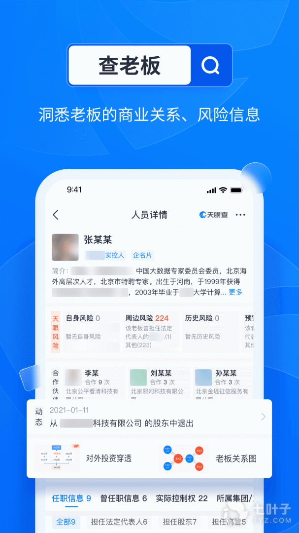 3、天眼查,这是款权威的手机商业查询工具,用户通过ta不但可洞悉更多企业信息数据,同时还可查询目标人物的关系等,网罗各个行业,为需要的朋友们提供帮助