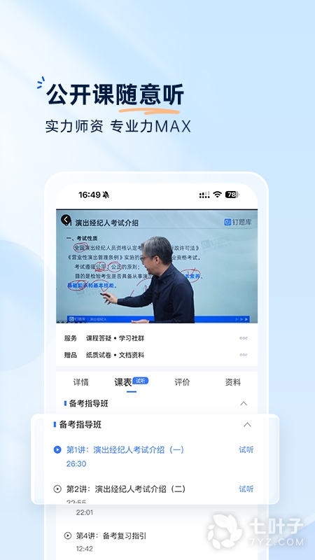 4、钉题库是款不错的学习辅导软件,每天都有丰富的题库可供练习,更有专业的网课,多位名师实时为你提供教学服务