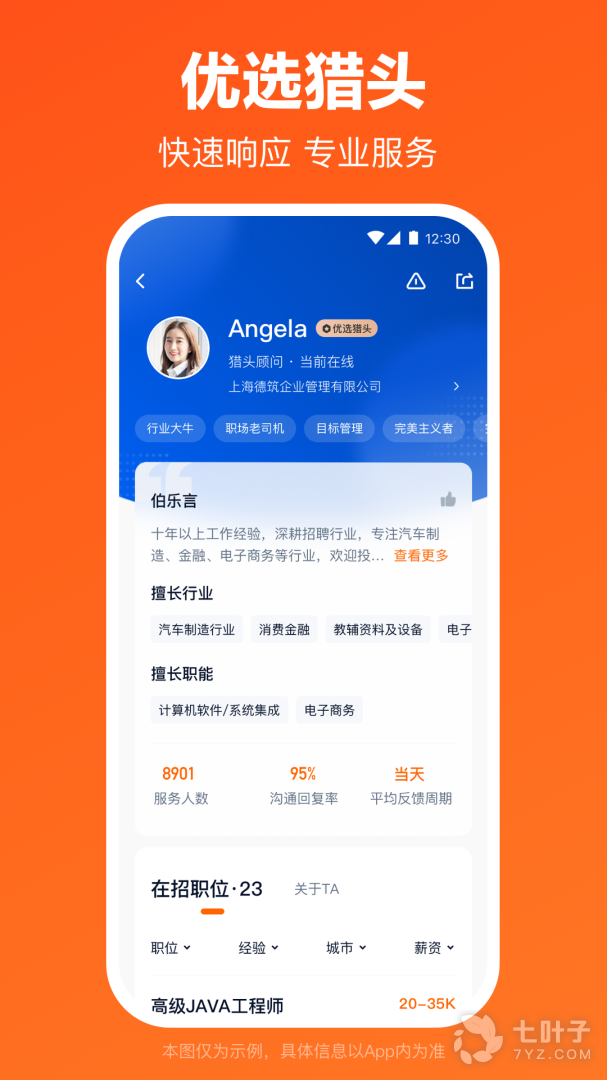 1、最高端、最专业的社交招聘应用,每天为您智能推荐职位,随时与猎头沟通,帮助您在职场更成功。
