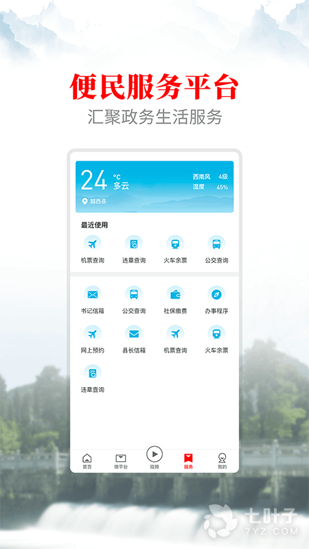 3、文昌越西最新版是专为越西县制作,软件拥有新闻资讯,视频,服务等等功能内容,可以更好的引导及服务越西县
