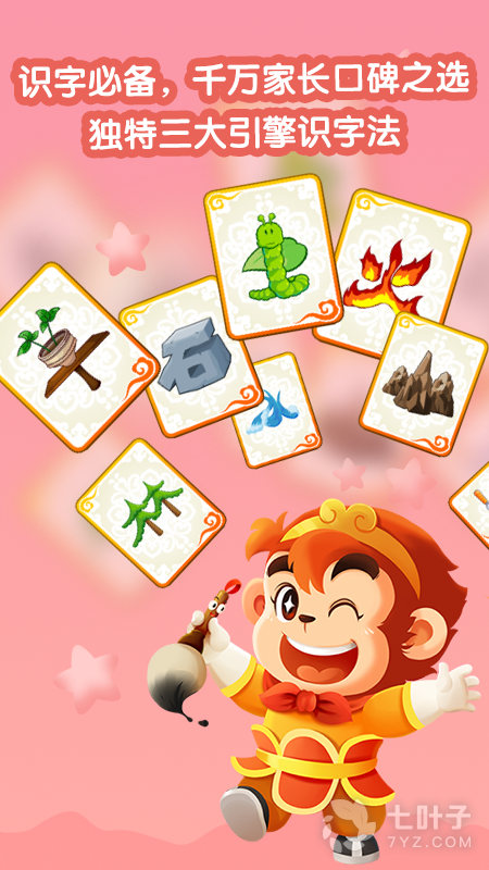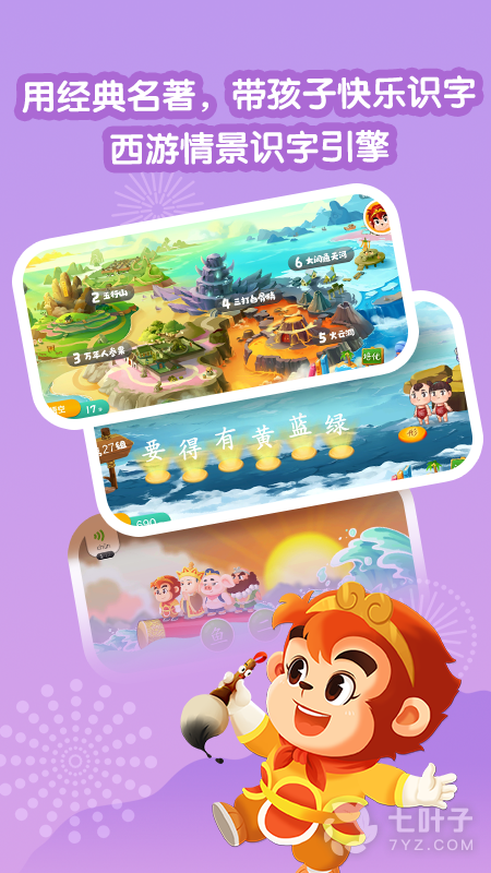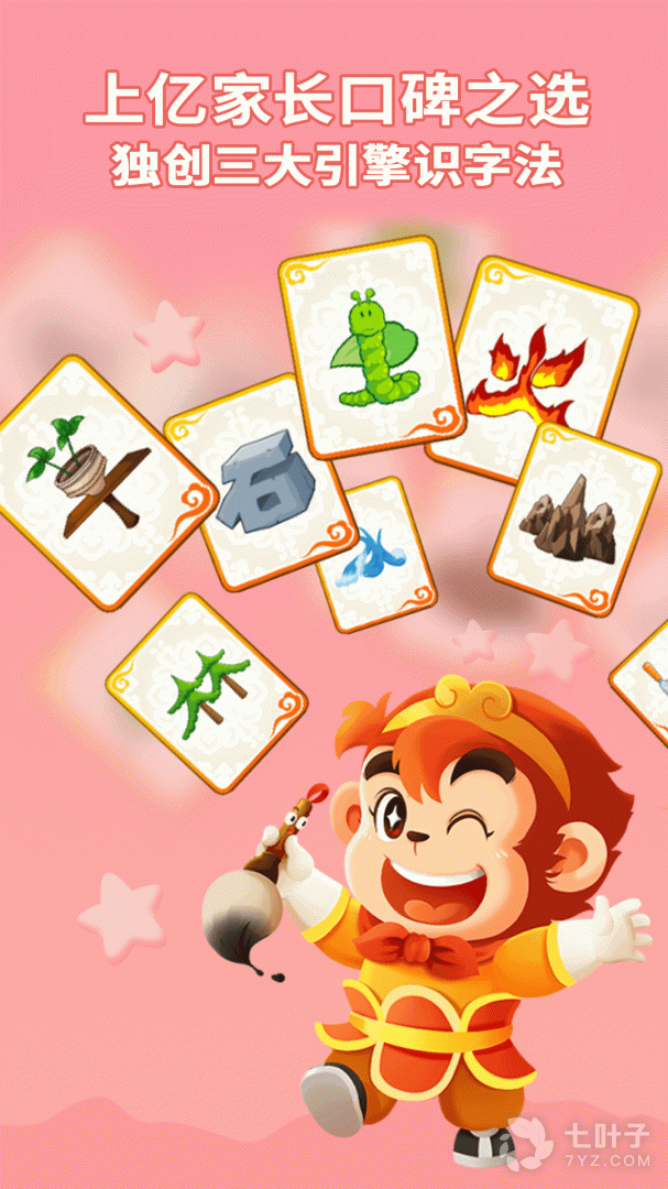 3、结合游戏的模式让孩子更加感兴趣。不单单是识字或者是,每天十几分钟的时间就能孩子学习新的汉字。将中国文化中的孙悟空作为孩子的启蒙老师,和孩子一起在游戏中认识字