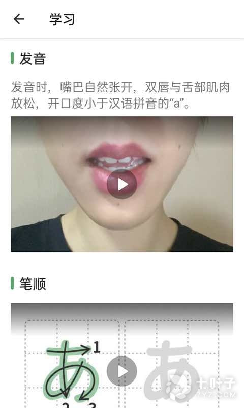 不知道假名到底该怎么写不要紧,点击相应的视频可跳转到书写教学界面,可听到对应的发音、看到相应的笔顺。