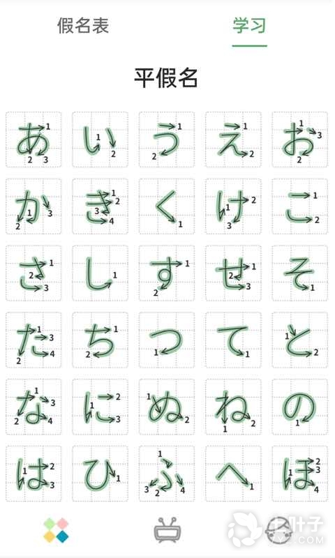 3、动态展现假名笔顺,亲自手写描红,来练一手漂亮的手写字体吧