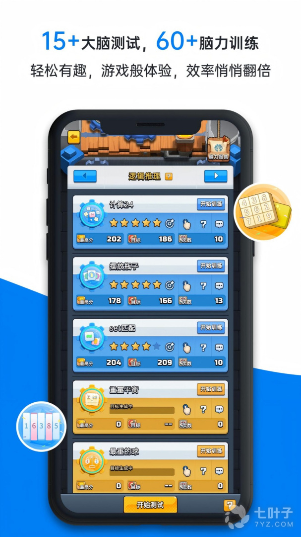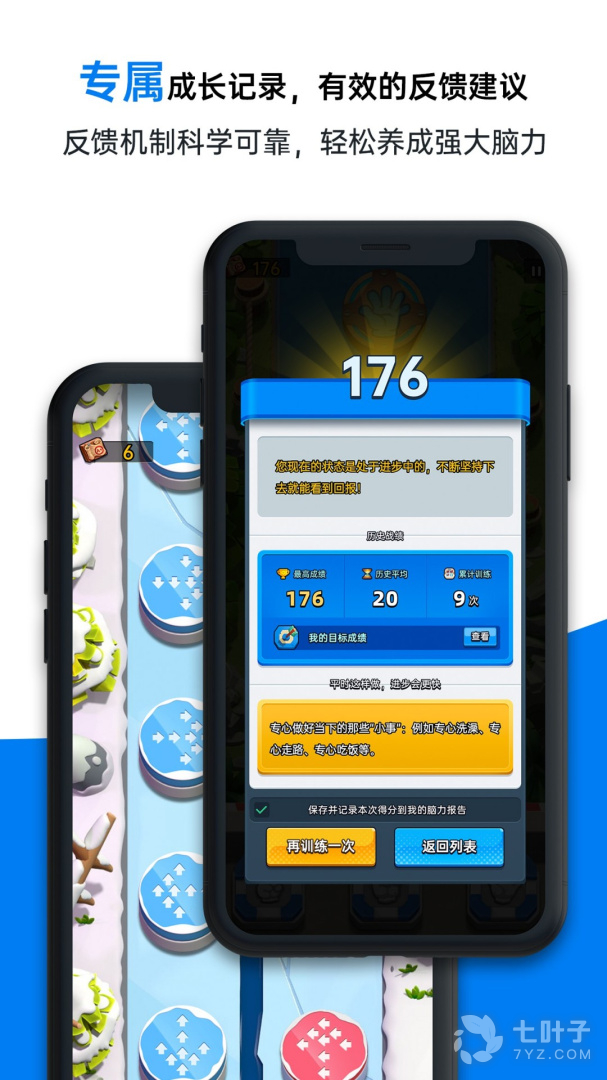 1、每个游戏仅需3-5分钟 ,同时成长脑的专利算法保证您能始终在合适的任务难度下进行游戏