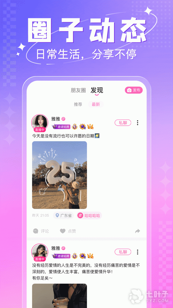 1、无处释放的表达欲就在这里尽情展示,自由自在分享生活瞬间,快来认识更多志同道合的好友~