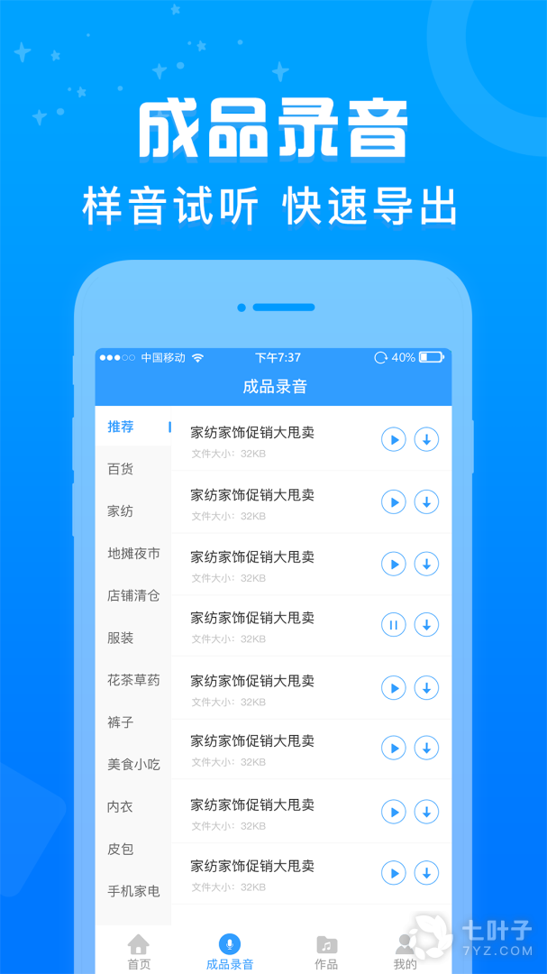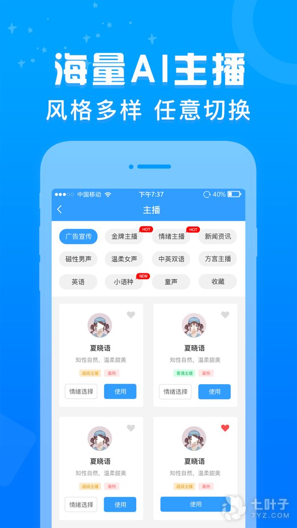 2、促销广告配音APP中可以轻松将文字内容转换成为语音,广告配音,在线生成,更有大咖主播帮你配音,专业的声音听起来更加灵动,自动循环播放