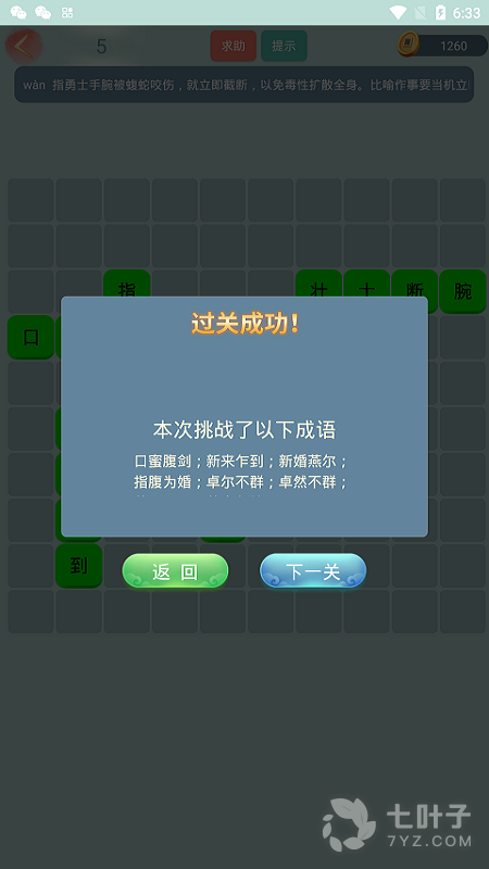 成语接龙的玩法,用关联性让你一个关卡学习好几个成语。