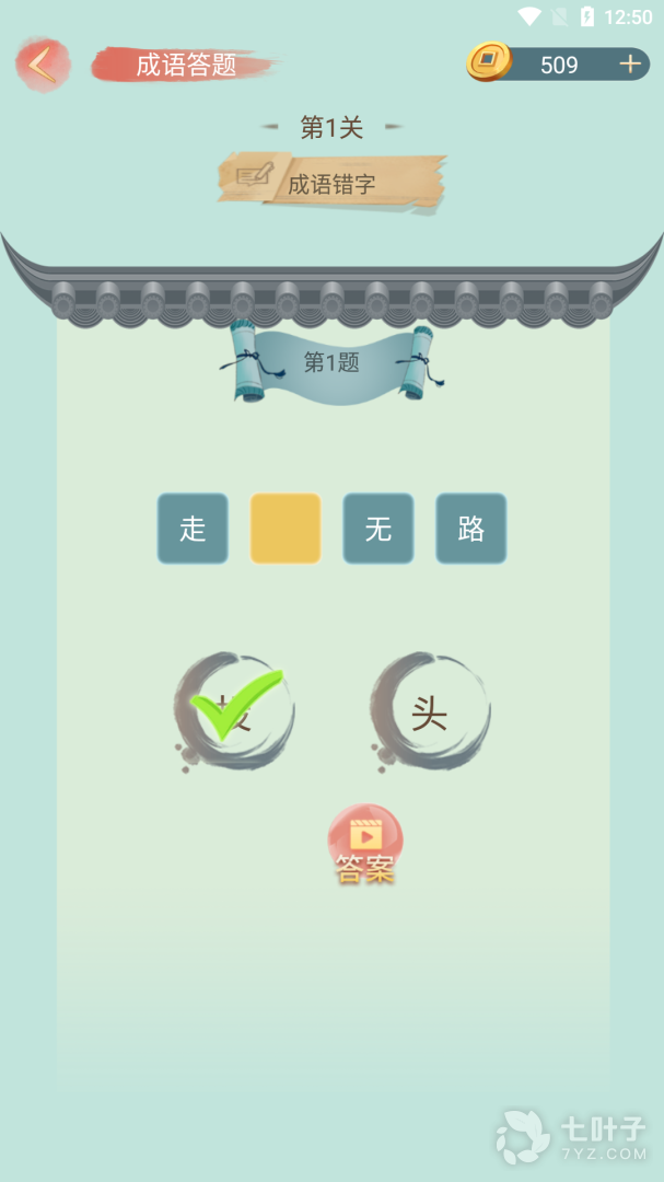 2、闯关答题模式,海量关卡随机出现成千上万的成语,点击屏幕填充成语
