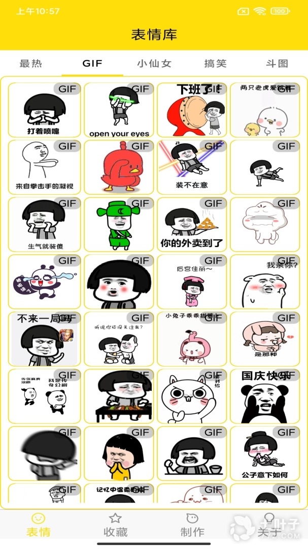 2、这里有海量的表情包可以选择,并且还能够自己p图和打字,让你的表情包更加的有趣