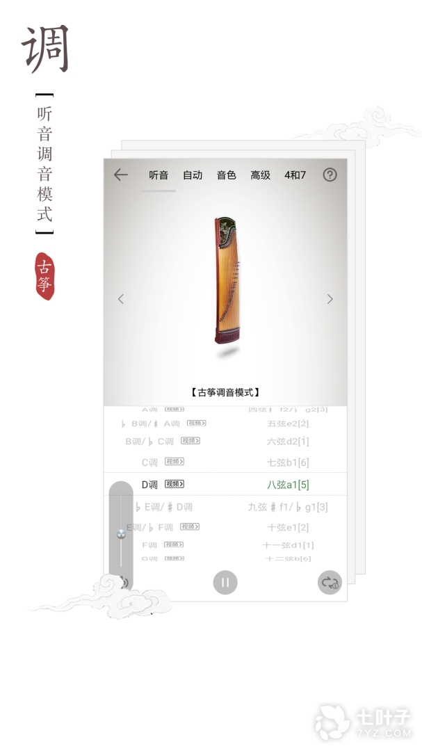 2、用户可以根据软件对每根弦进行调整,你可以从音色,听音等方式去调整弦,从而让古筝能发出更好听的声音,欢迎下载使用古筝调音器