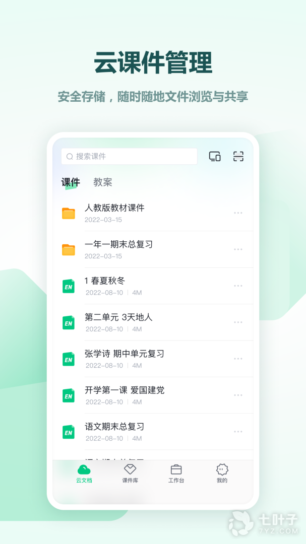 2、可将备课课件、资源上传云平台,授课时一键下载使用,无需借助任何存储设备