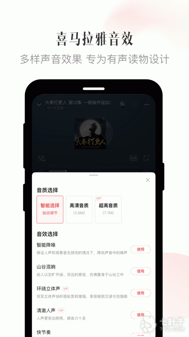 2、喜马拉雅2024版内容丰富软件拥有和综艺进行联动的玩法,这里有吐槽大会、声临其境等一系列段子声音类节目让你的体验变的更加舒适,同时这里也是声临其境官方的唯一投票通道,在这里你能听书、听综艺还有网络热门段子可以听让你快速和时下热梗接轨