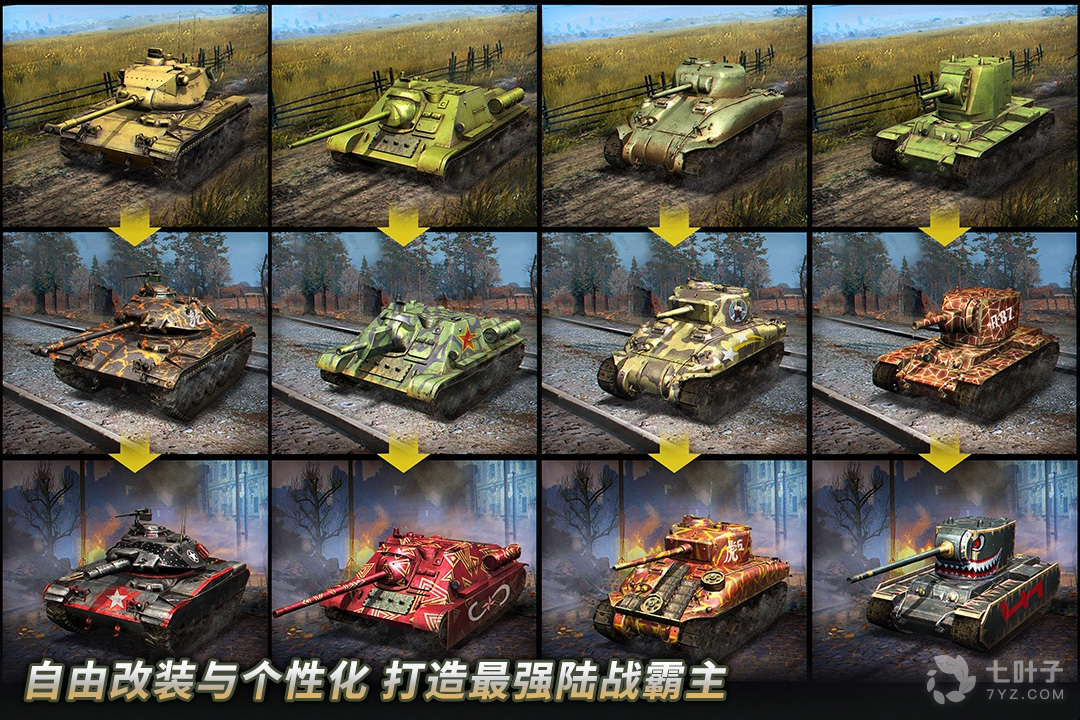 4、各种酷炫的坦克装甲都在等着你去体验,每一款都有自己独特的战斗乐趣