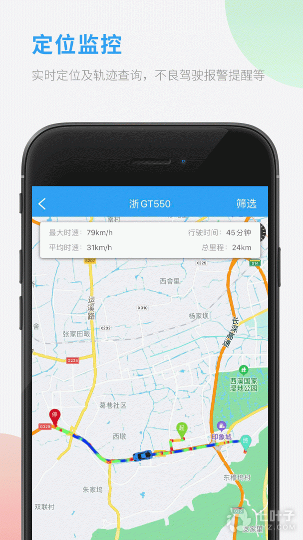 2、可以清楚的看见车辆的位置、当前最大的行驶速度