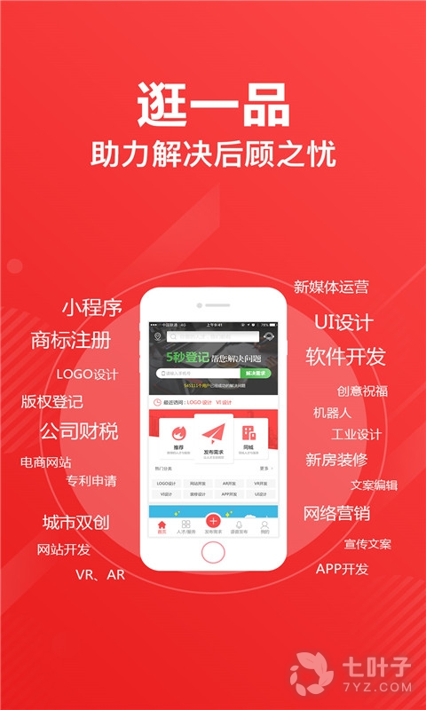 3、平台拥有设计师、程序员、店铺装修等诸多优秀创意人,可以帮助用户解决品牌设计、工业设计、商标注册、网络推广等