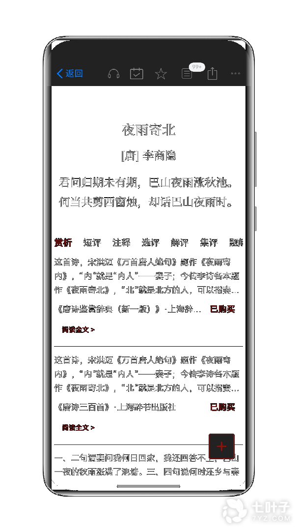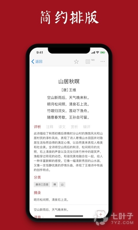 1、西窗烛清爽的界面展现诗意,卡片式摘录、分类赏析、上千首作品,西窗烛功能非常全面,还可以为用户提供丰富的诗词、书法、绘画等学习工具、内容社区和文创电商服务