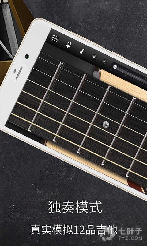 3、专门用于吉他学习。这里真实的模拟了吉他的和弦、声音等等,可以真实地弹奏出曲子,还有很多吉他乐谱可以学习