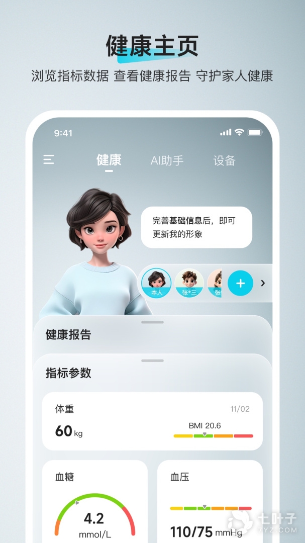 鱼跃健康管家帮助您全面记录血压、血糖、体重、体脂、血氧、体温的数据,科学分析,智能提醒,同时给出健康建议和计划,为您和您的家人健康保驾护航。