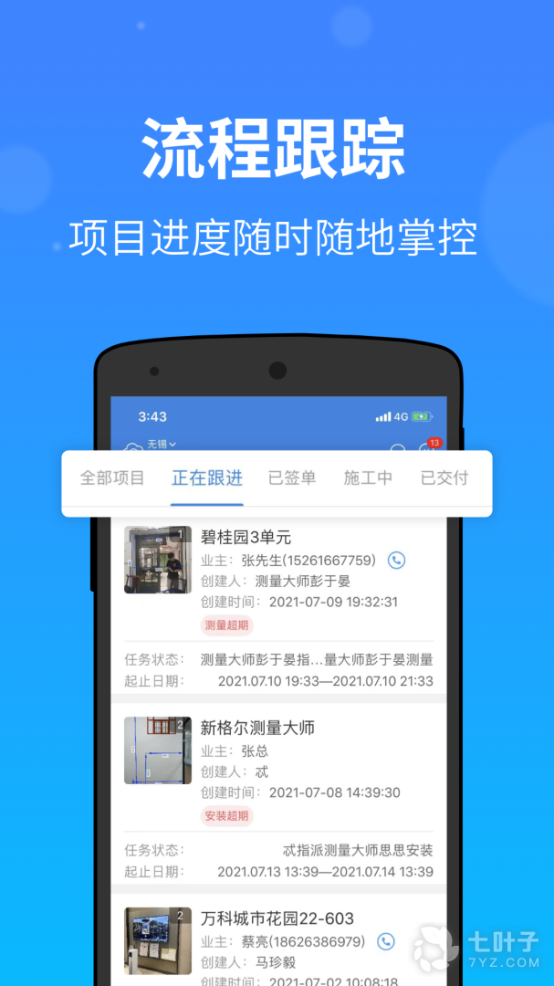 1、项目过程管理:在待分配、待测量、待安装、待验收、已验收和关闭过程中,可以查看和编辑所有项目过程