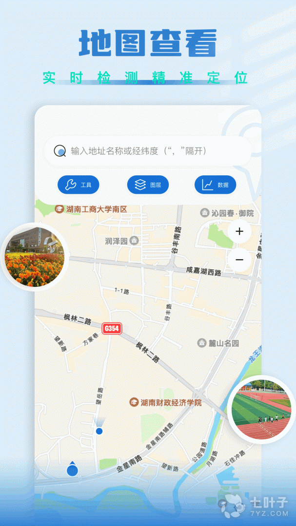 4、支持通过手势放大或缩小的方式来查看对应地图位置。