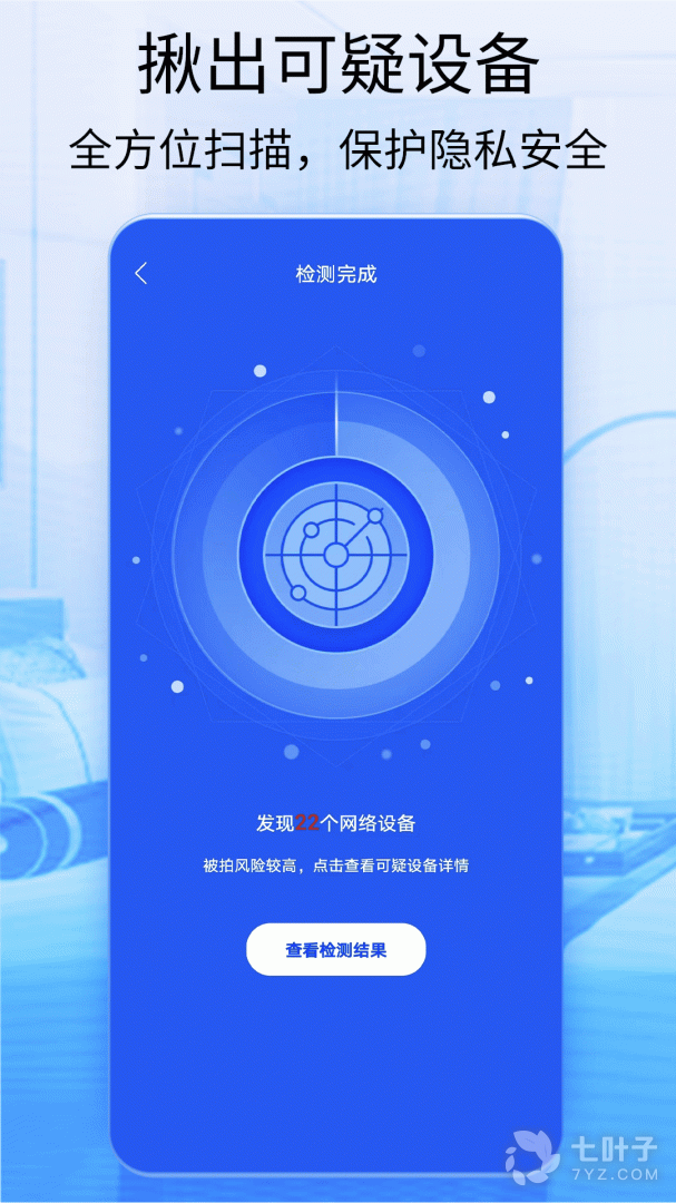 针孔摄像头探测器利用大数据挖掘技术,深度扫描酒店房间里所有网络摄像头,让隐藏的摄像头一网打尽,本软件可以帮助用户快速检测出室内安装的针孔摄像头设备。这个软件具有很高的安全性,操作简单省心,保护的隐私安全!让你安心入住酒店!快乐旅行!