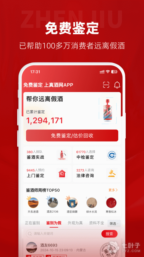 该软件是一家涵盖酒类交易、专家在线鉴酒和酒类知识学习的名酒鉴定交易平台。我们在抖音、快手等短视频平台拥有1000多万粉丝,每天发布鉴酒直播视频,累计鉴定假酒已超百万瓶,在鉴酒领域远超其他平台,用专业的技术让您远离假酒。