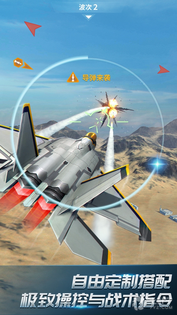 2、作为一部空战大作,本作的音效自然不在话下!在空中高速飞行的战机与空气产生的强烈摩擦声、导弹机炮来袭的预警声,震耳欲聋的导弹击毁爆炸声音、都能让人产生如临其境的错觉!还有跌宕起伏,震撼人心的背景配乐,也大大加剧了空战现场的紧张气氛