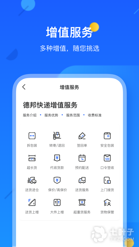 1、德邦快递是方便人们的需求,提高手机寄快递一战服务。在德邦快递2024版中可进行运费计算、收送范围查询、汇率查询、时效查询等。保障物品的安全性,让客户享受全方位的服务体系。物流管理严格,用户或者商家直接进行电话或者信息查询。一对一的服务宗旨