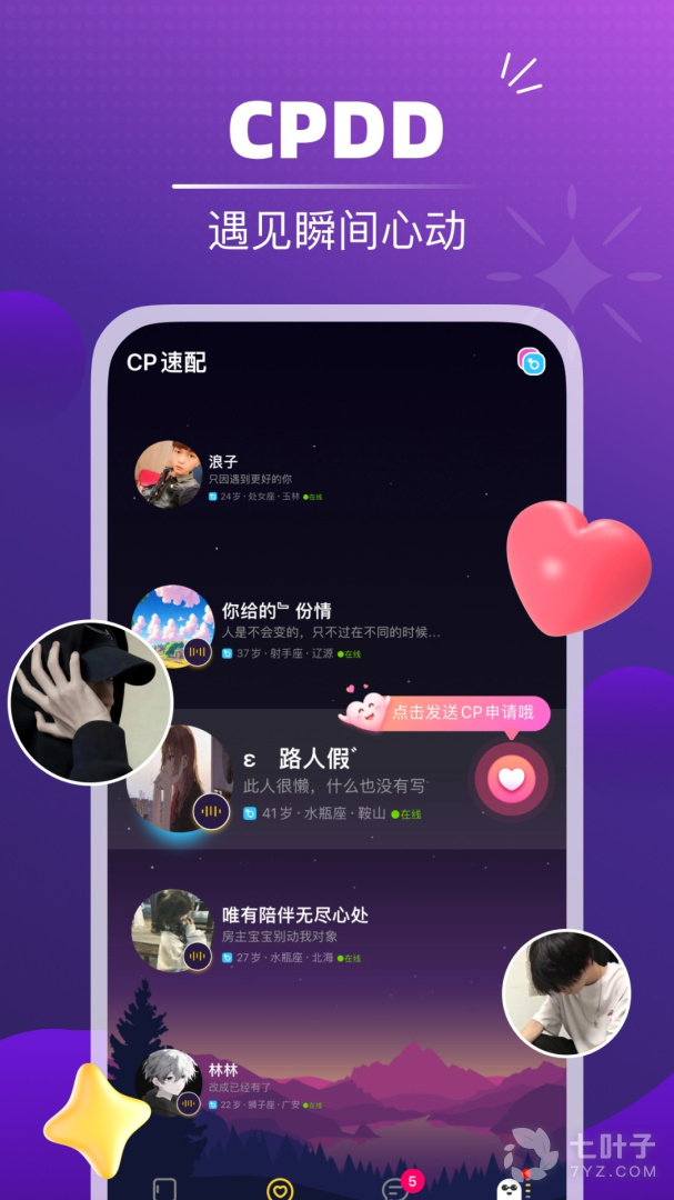 3、音对语聊,这是最近兴起的语音聊天交友软件,在这里所有的用户都摒弃了文字交流的方式,直接用声音来对话,同时又不知道对方的相貌,为双方增添了一层神秘感,增强了安全性,通过声音来进行不断的猜想,不知不觉中拉近彼此间的关系