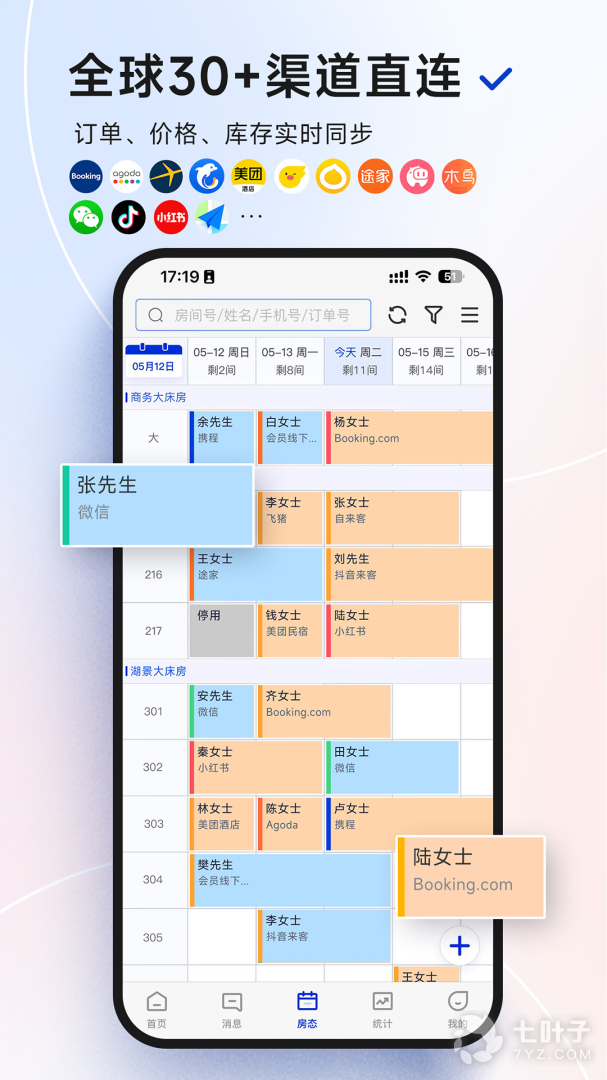3、统计报表了解预定渠道、营收报表,为未来制定战略,做出明智选择