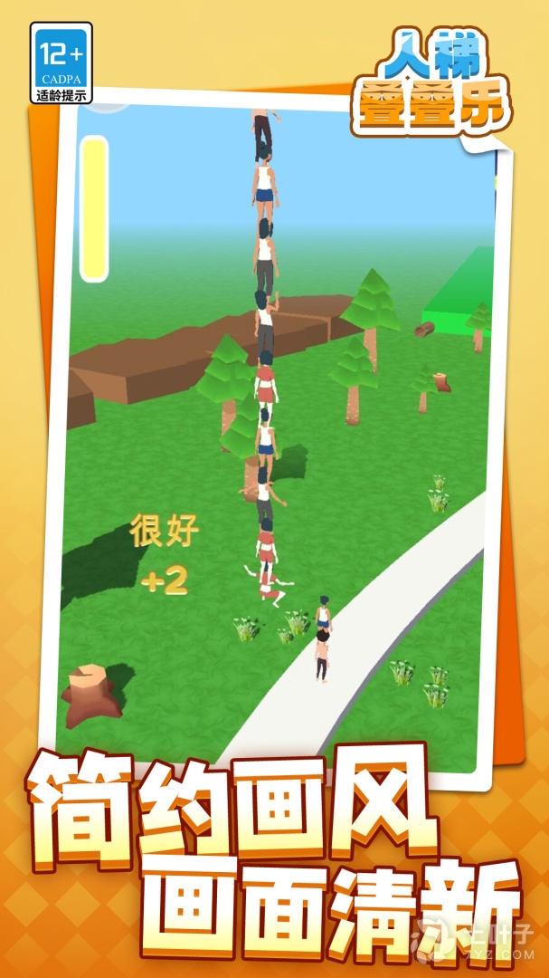 2、人梯叠叠乐是一款挑战极限的闯关游戏,有着最简单的玩法,你只要将人梯塔搭到最高就能获胜,游戏比较适合休闲打发时间,精致的游戏画面,简单灵活的游戏玩法,带给你极致的游戏体验