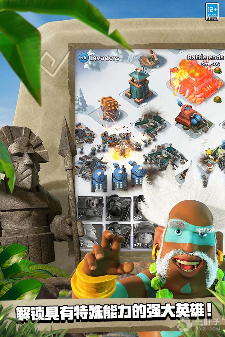 2、海岛奇兵为玩家带来史诗级的海岛战争,游戏由supercell制作,延续了COC的核心策略玩法,将战场转移到了更加变化莫测的海域上,玩家同样需要在这里进行军队的配置,通过自己在商人那边获取的资源配合自己的战术需求行军攻打被掠夺的岛屿