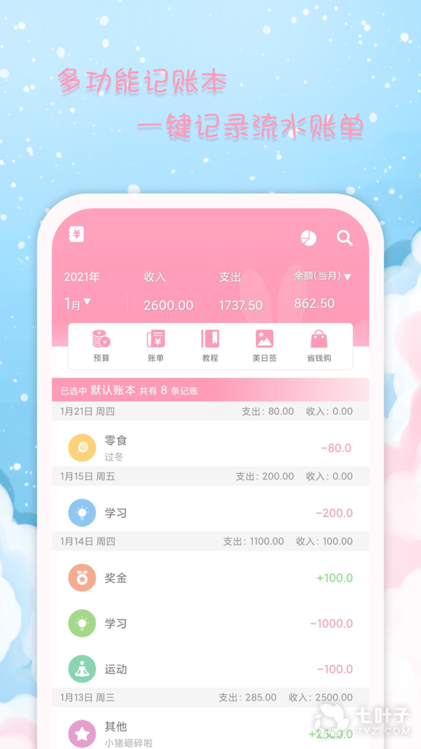 3.你还在为每月的收入和支出而着急吗? 还在月光下不知道钱花在哪里了? 让我们做个笔记,记下你每天的开支,健康管理你的财务,成为理财小能手。