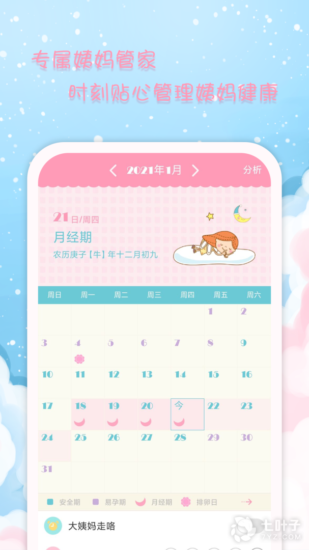 1. 记录经期大姨妈简单方便,不再需要每天记录,帮你准确预测阿姨的日子。