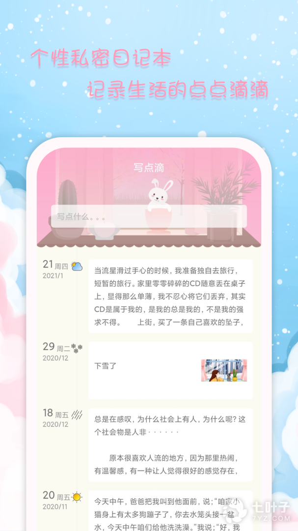 2.功能简单实用,记录生理期,记录情感生活瞬间,写下今天的心情,每天记录,让点点滴滴成为回忆。
