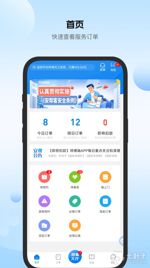 1、安帮客师傅端,一款专为安装师傅打造的接单神器,适用于家居、建材行业,拥有订单查看、在线接单、订单管理等多种功能,让安装师傅接单更方便,工作更轻松