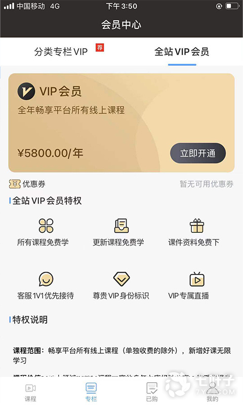 1、点击“课程”进入课程页,近500节实务干货课程,任君挑选。点击购买,即可观看课程。更有会员专属权益,全网好课,无限畅看