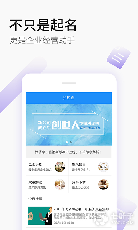 这里拥有着智能AI取名方法,企业名称、商标命名一键解决,还提供八种名称分析方法,全方位的解读每个名字的深厚含义,能让企业在清楚名字的意义下选择最合适的名字。这里除了能为企业公司取名字,还能为企业中的工作人员提供分水课程学习、财税学习以及国家各种政策解读和办公文档下载等服务,对于公司、企业来说是一款非常实用的app。