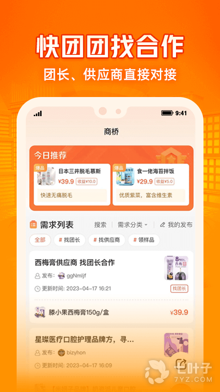 【商桥】:呱呱爆品推出商桥板块,可以让团长和供应商发布需求信息找合作,互相进行资源撮合对接