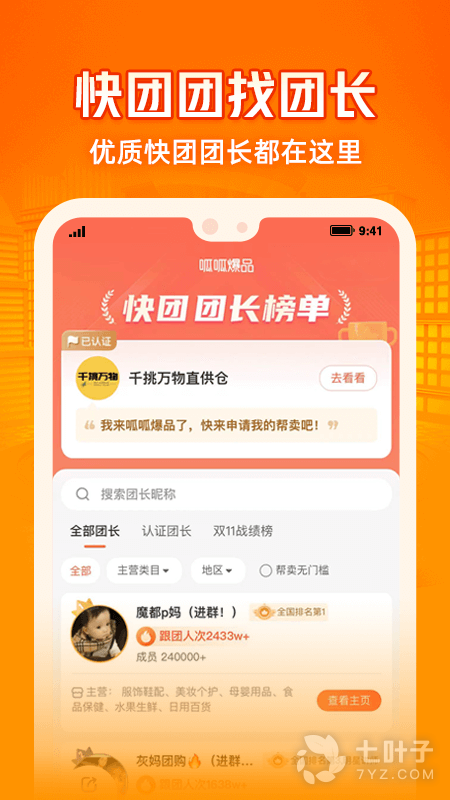 【团长榜】:呱呱爆品搜集快团团1000+的团长信息,进行榜单排序并分类整理,帮助供应商快速寻找合适团长