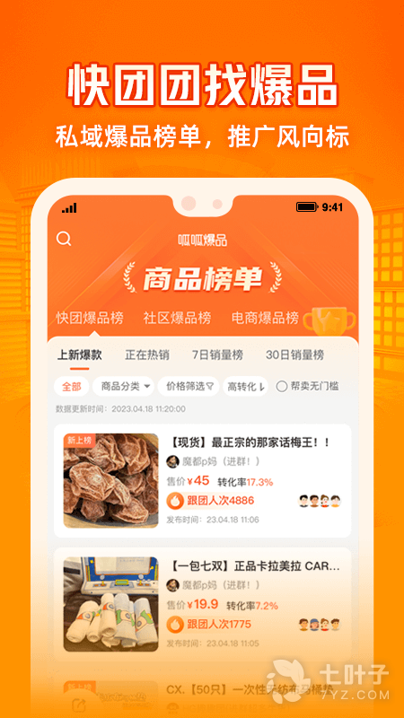 【爆品榜】:呱呱爆品汇总社群/社区团购每日爆品信息,搜罗快团团每日热销商品,为团长选品提供数据参考