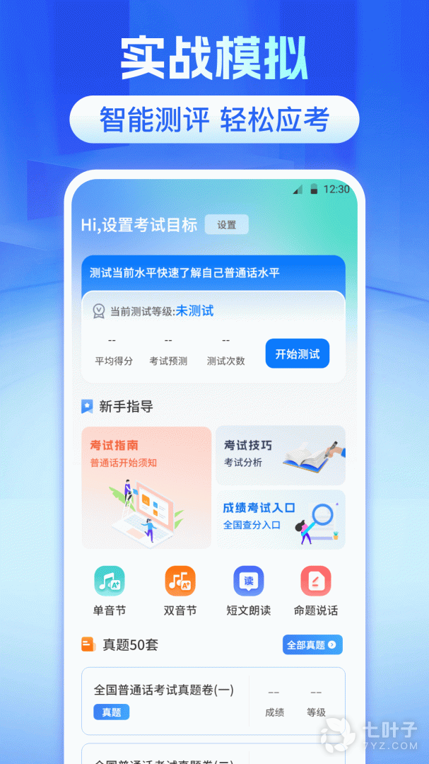 4、普通话测试是小编为大家分享的普通话等级考试测试软件,拥有丰富专业的普通话测试试题训练以及答题技巧,包含单音节字词、多音节词语、短文朗读等等,帮助大家顺利通过考试
