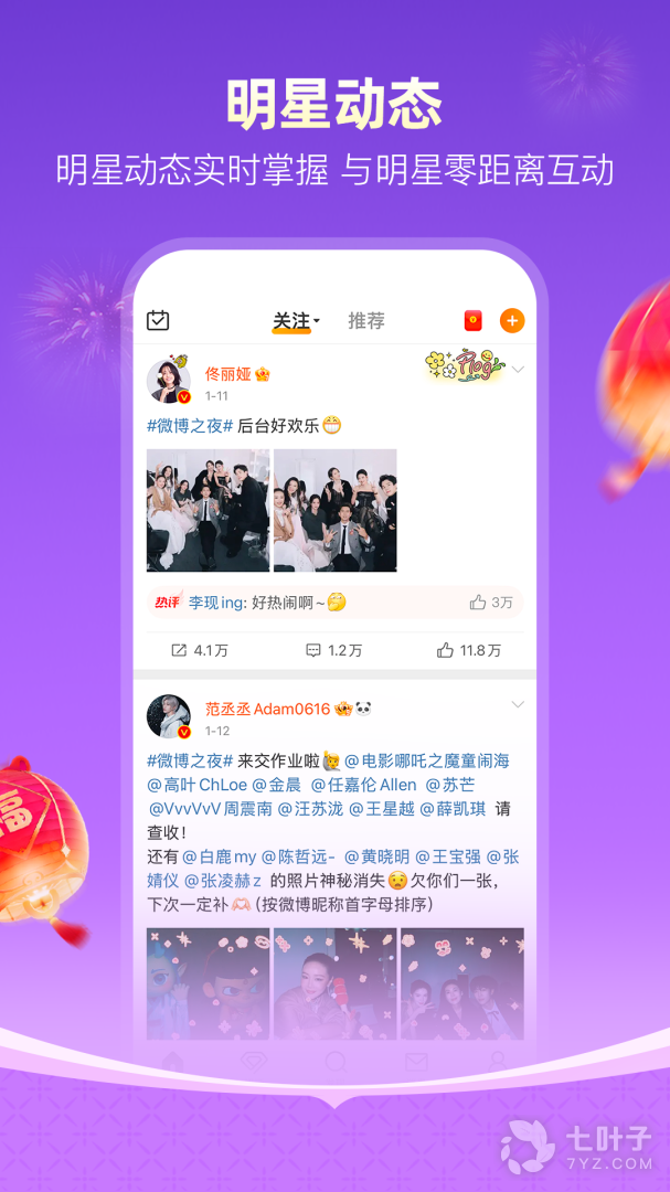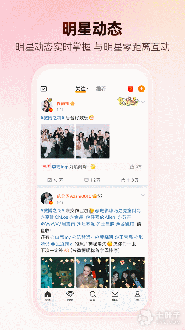 明星、大V的最新动态,加关注便可第一时间看到喜爱博主动态