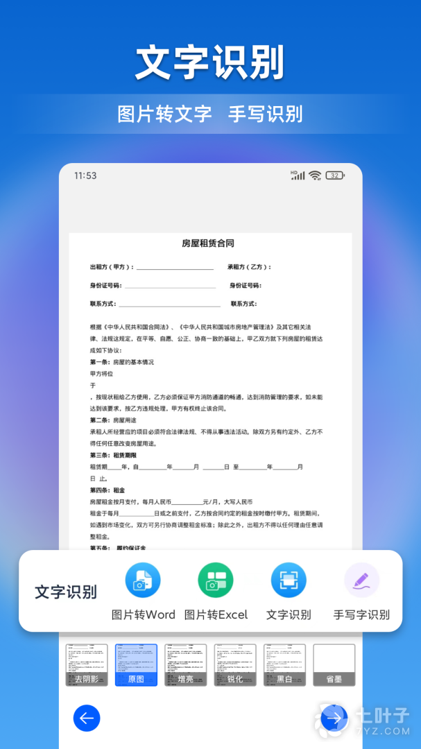 -扫描识别各种文件、图片、书籍、名片等并提取想要的文字,可对识别的内容进行编辑、复制