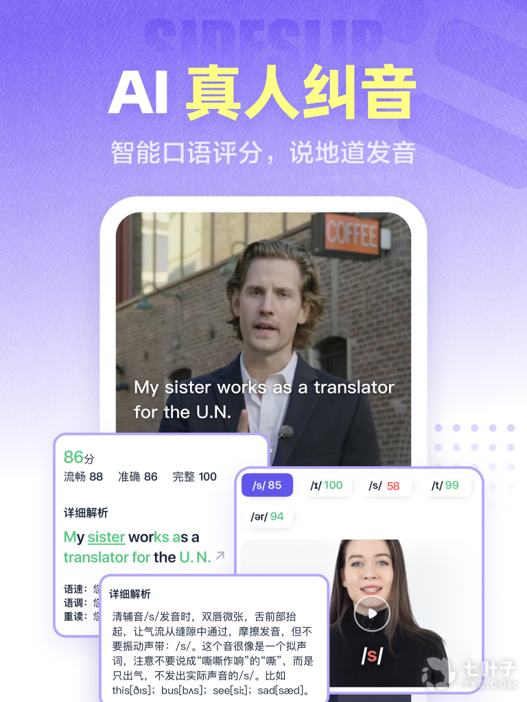 3、口说录音:真人原音朗读比对,矫正口音成效超惊人。