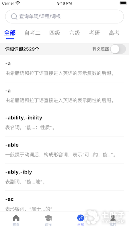 1、词根词缀词典是款非常好用的词典应用,软件为你提供专门的记忆法,帮你快速的记单词,提供多种方法使用,拥有海量的词汇选择,帮你快速提高学习效率