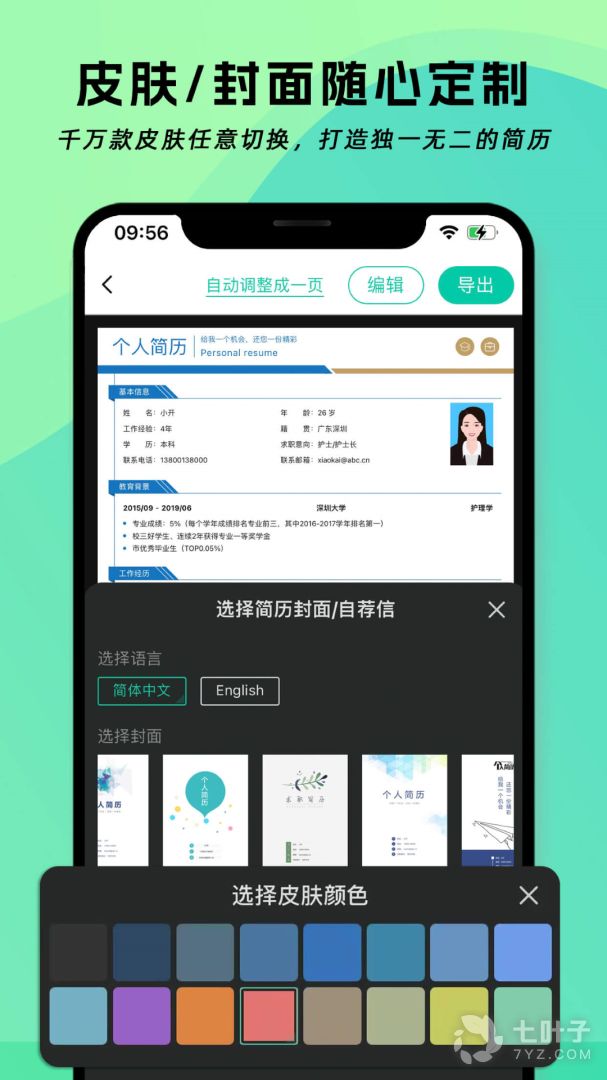 4、还有丰富的皮肤封面随心定制,任意切换使用,独一无二的简历随时拥有